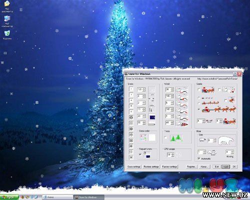 ![]() Информация: Название: Снег на Рабочий Стол Год выпуска:2010 Описание:Данная программка предназначена для придания «снежного настроения», и при её запуске на вашем рабочем столе будет идти снег, ездить Санта-Клаусы, бродить белые медведи и сиять зеленые елки. Через несколько (30-40) минут после включения программы, Ваш рабочий стол заметёт снегом, начнутся бури и т.д. Это Программка улучшает зимнее предновогоднее настроение! Снег на Рабочий Стол | |